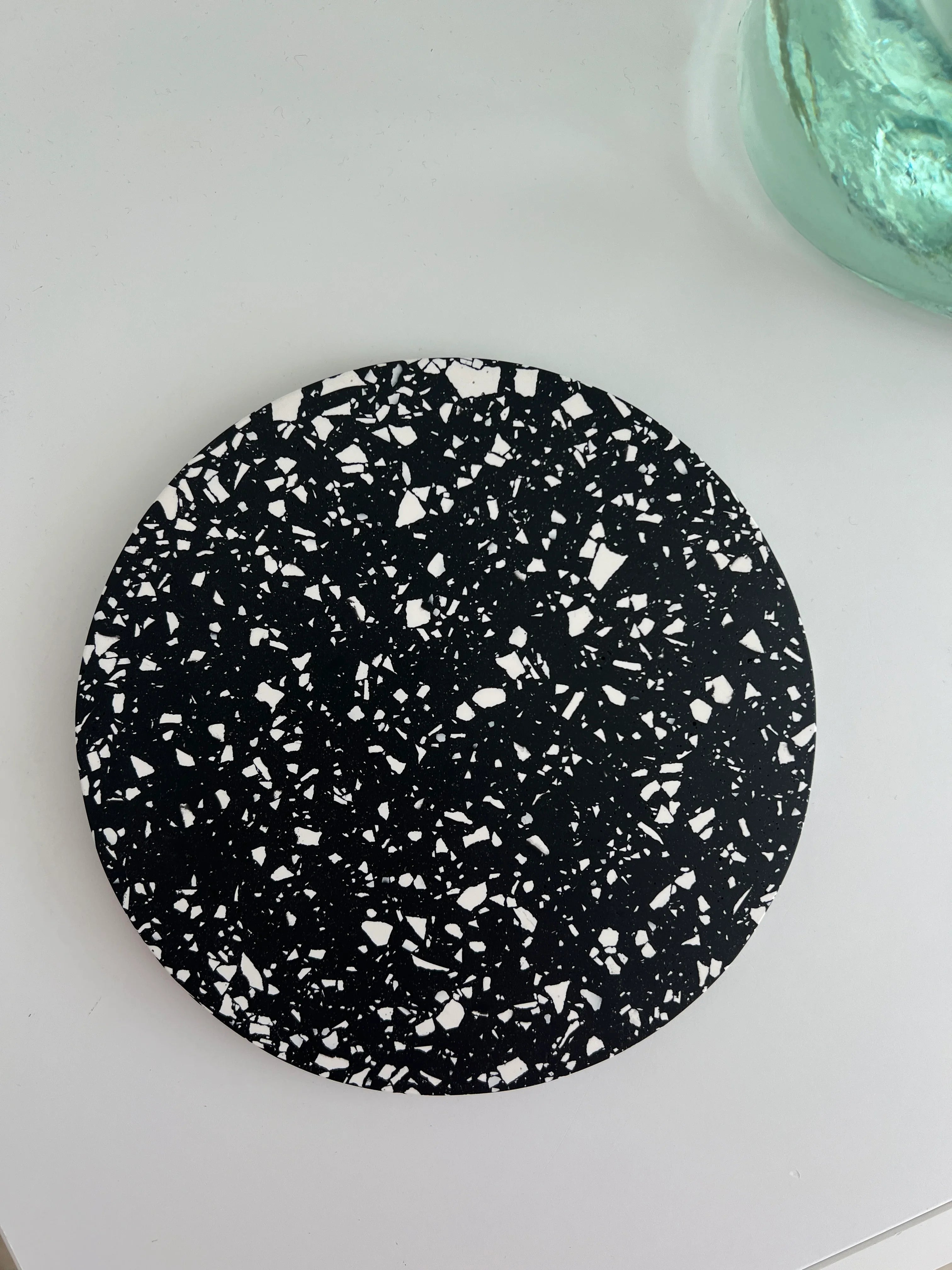 Cada peça é totalmente feita à mão, desde a mistura e cor até o processo de moldagem, lixamento e selagem. Esta abordagem manual garante que cada item tenha o seu próprio charme e distinção. Como resultado, podem ocorrer pequenas variações em padrões e cores, assim como a possível aparição de pequenas bolhas de ar que contribuem para sua singularidade e natureza única.